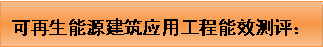 可再生能源建筑應(yīng)用工程能效測(cè)評(píng)是指對(duì)地源熱泵系統(tǒng)、太陽能熱利用系統(tǒng)、太陽能光伏系統(tǒng)進(jìn)行指標(biāo)評(píng)價(jià)、性能合格判定和性能分級(jí)評(píng)價(jià),以及節(jié)能效益、環(huán)境效益、經(jīng)濟(jì)效益評(píng)估。